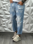 Стильні чоловічі джинси MOM — чудовий вибір для сучасного повсякденного образу. Модель має вільніший крій та зручну посадку, що забезпечує комфорт під час носіння. Світлий денім із декоративними потертостями додає джинсам стильного та модного вигляду. Джинси легко поєднуються з футболками, худі або кофтами та підходять для щоденного носіння.